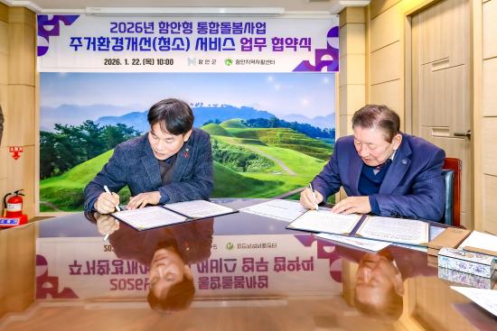 À̹ø Çù¾àÀº ÁÖ°Åȯ°æ°³¼±(û¼Ò)ÀÌ ÇÊ¿äÇÑ ÅëÇÕµ¹º½ ´ë»óÀÚ¿¡°Ô ÁÖ°Å °ø°£ Á¤ºñºÎÅÍ »çÈİü¸®±îÁö ¼ºñ½º¸¦ ¿¬°èÇØ Áö¿øÇϱâ À§ÇØ ¸¶·ÃµÆ´Ù. Çù¾à½Ä¿¡´Â Á¶±ÙÁ¦ ÇԾȱº¼ö¸¦ ºñ·ÔÇØ ÇÔ¾ÈÁö¿ªÀÚȰ¼¾ÅÍ Á¤ÇØÃ¢ ¼¾ÅÍÀå°ú ½Ç¹«ÀÚ°¡ Âü¼®ÇßÀ¸¸ç, ÇԾȱº°ú ¼öÇà±â°üÀº ´ë»óÀÚ ¹ß±¼°ú ¿¬°è, ¼ºñ½º Á¦°ø, »çÈİü¸® Àü¹Ý¿¡ ´ëÇØ »óÈ£ Çù·ÂÇϱâ·Î Çß´Ù.