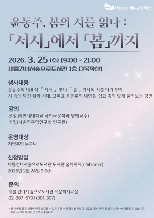 °¿¬Àº ¿¬¼¼´ëÇб³ ±¹¾î±¹¹®Çаú ¼³¼º°æ ¸í¿¹±³¼ö¿Í ³ª¼ÕÀι®Çבּ¸½Ç ÃÖ¿µ ¿¬±¸¿øÀÌ °øµ¿À¸·Î ¸Ã´Â´Ù. À±µ¿ÁÖ ½ÃÀÎÀÇ ¹®ÇÐ Çü¼º°ú Àü°³ °úÁ¤À» ü°èÀûÀ¸·Î Ç®¾î³»°í ÀÛǰ¿¡ ´ã±ä ½Ã´ë Àνİú À±¸®Àû ¼ºÂûÀ» ½±°Ô Àü´ÞÇÒ ¿¹Á¤ÀÌ´Ù.